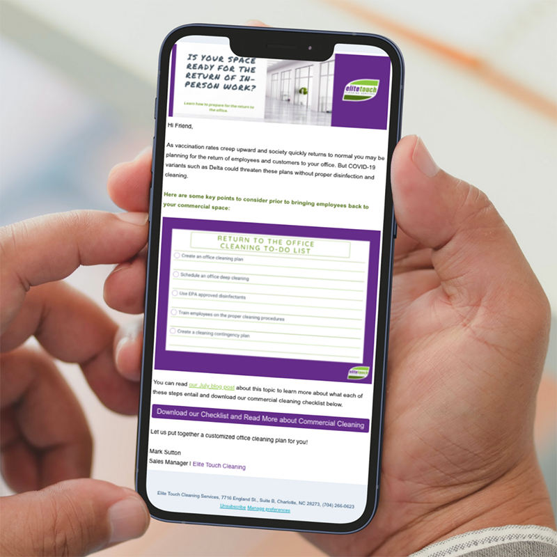 We partnered with Elite Touch Cleaning to identify their audience and develop an annual communication plan to grow their customer base and nurture new leads with relevant content.